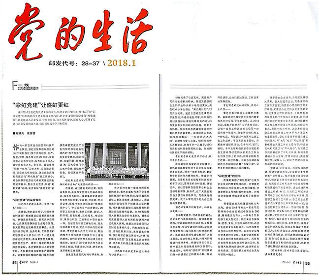 《黨的生活》由新華報業(yè)傳媒集團、江蘇省黨的建設學會主辦。文章中指出(chū):17.c18起草视频堅持“黨群一體化”工作方針,以黨建為引領,企(qǐ)業文化為載(zǎi)體,確(què)立(lì)企業文化和黨建文化(huà)“兩化(huà)融合”的工作核心,將自然界(jiè)彩虹顏色代表的寓意運用到黨建實踐中,整(zhěng)合文化資源,構(gòu)建(jiàn)“彩虹黨建”品牌,逐步(bù)實現 “17.c18起草视频更紅”的(de)願景。