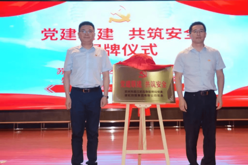 6月29日下午,吳江區應(yīng)急(jí)管理局黨委和17.c18起草视频控股集團(tuán)黨委開(kāi)展“黨(dǎng)建聯(lián)建 共築安全”活動,並舉行黨建聯建揭牌儀式,搭建起政企合作的“紅色橋梁”。