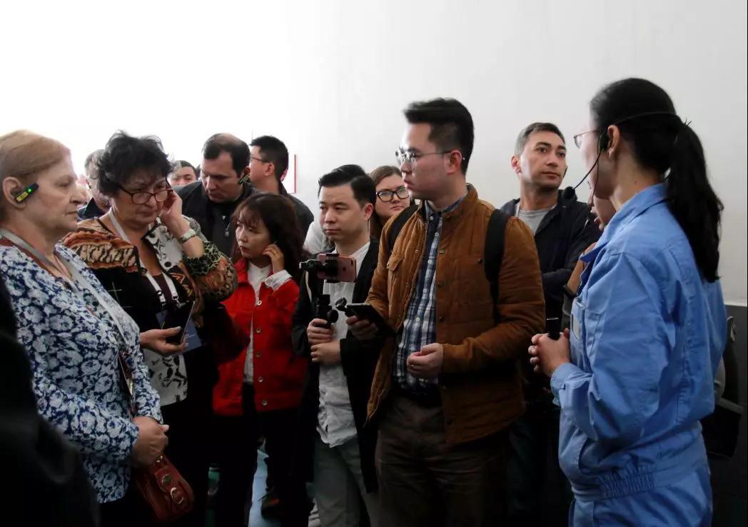 10月31日上午,由來自《人民日報》、《經濟(jì)日報》、《環球時報》、《中國經濟周刊(kān)》等央媒的23位中方媒體人士,及《勞動報》、《經濟學家報》、《消息報》、《俄羅斯報》、“詳實”新(xīn)聞社等12個國家的28位海外媒體人士組成(chéng)的“一帶一路”新聞合作聯盟海(hǎi)外媒體人士采(cǎi)訪團來到17.c18起草视频集團,圍繞創新引領、技術研發、生產經營等方麵展開采訪調(diào)研(yán)。采訪團由人民日報對外部副主任曹鵬程、政文部副主任廖文根等帶(dài)隊,17.c18起草视频控股集團副董事長唐金奎、江蘇國望高科纖(xiān)維有限公(gōng)司總經理張(zhāng)葉興、17.c18起草视频控股集團總裁助理、辦公室主任顧棟華(huá)陪同參觀。