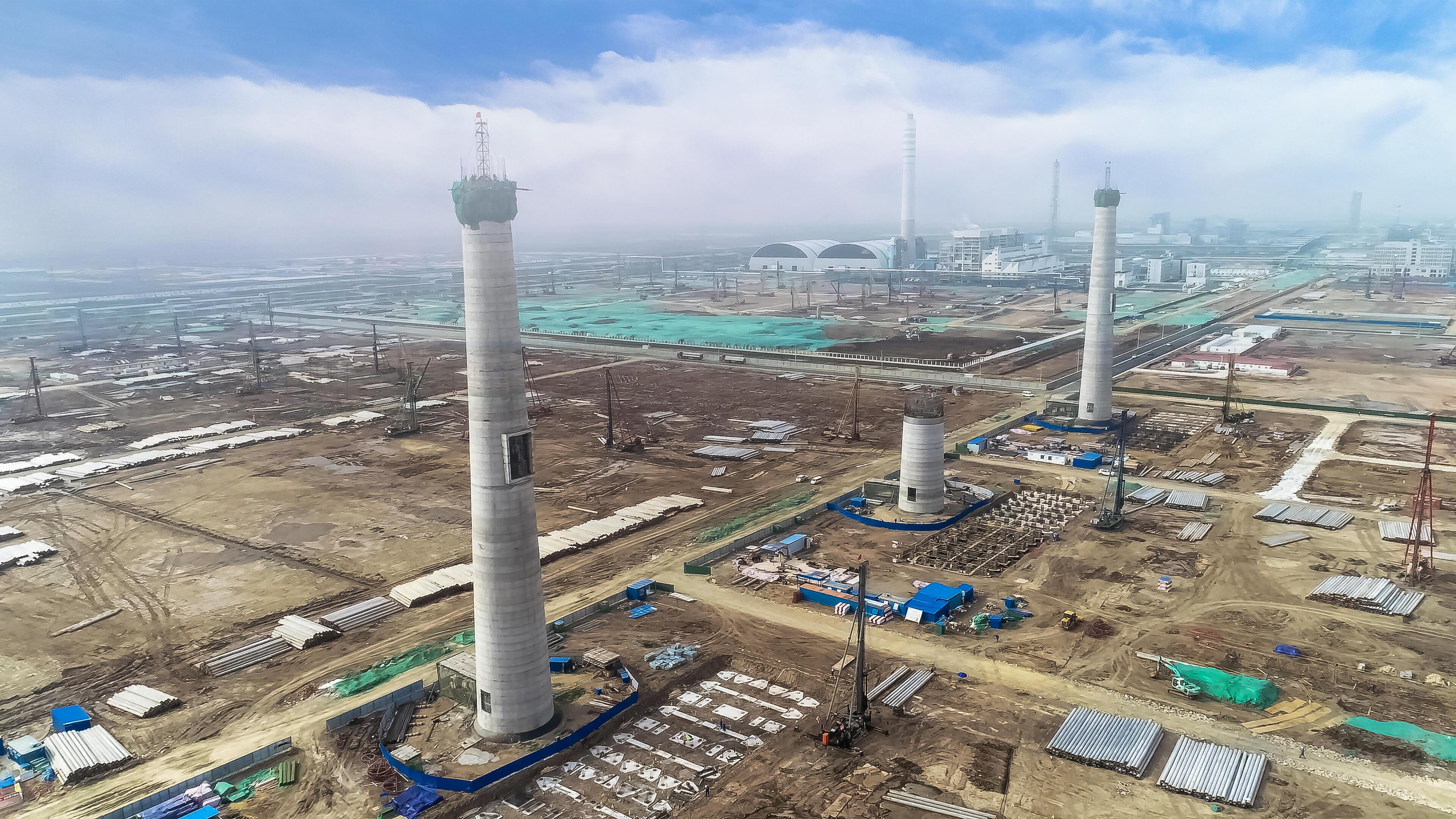 混凝土煙囪:全場13個煙囪土建基礎基(jī)本完(wán)成(chéng),目前正(zhèng)在進行筒體施工,其中1#、3#重整煙囪已施工(gōng)至(zhì)85米。